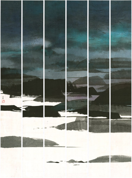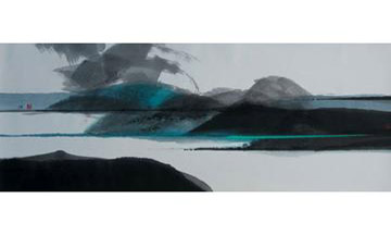Fung draws inspiration from the ancient masters of Chinese brush painting but also acknowledges the influence of the 1960’s New Ink Painting Movement in Hong Kong led by Lu Shoukun (1919-1975). Using traditional materials and techniques in his compositions and channeling ancient aesthetics such as the blue green landscapes of the Song dynasty, Raymond’s modern atmospheric compositions bridge the variety and sometimes disparate elements of Hong Kong’s unique culture. He has stated that his paintings are inspired by the deserted areas such as the city’s surrounding islands and the open spaces of Sai Kung and Plover’s Cove. His minimalistic approach to his compositions expose the essence, essentials and identity of his subjects through eliminating all non-essential forms, features and concepts. Fung’s paintings are a delight to the eye exercising our viewpoint and encouraging movement through his compositions while offering relaxation with his choice of colors and ink tone. Raymond Fung now represents the leading edge of New Ink Painting Movement in 21st century Hong Kong.