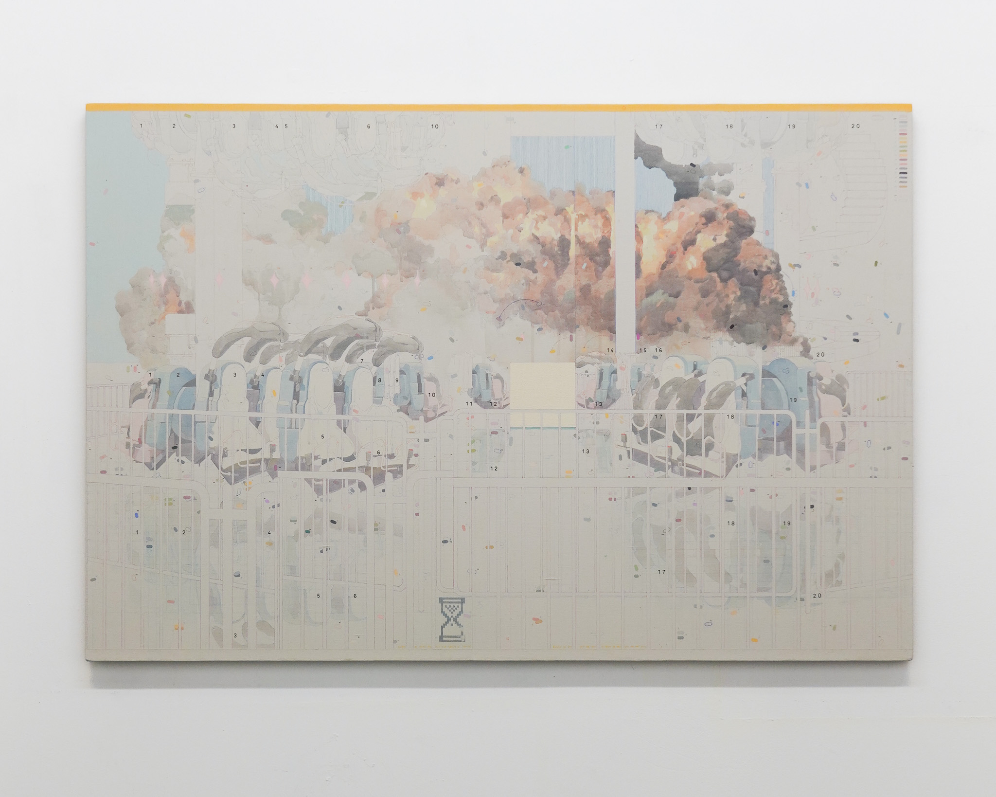 Xu’s works began with memories of regret, unfulfilled promises, and panic. There are no better places than the carnival - the ultimate controlled chaos to blend euphoria with hysteria. Largely influenced by Jean Baudrillard, Xu’s works, as iterations of simulacrums, substitute the signs of the real to create false orders. Numbers, glitches, color codings appear in his works repetitively only to hint at a fictional logic. Whereas Baudrillard believes a carnival (in his original example, Disneyland) functions as a “deterrence machine,” Xu’s false orders become lures, quite literally “sugar-coating” the era of simulation that we had already entered.