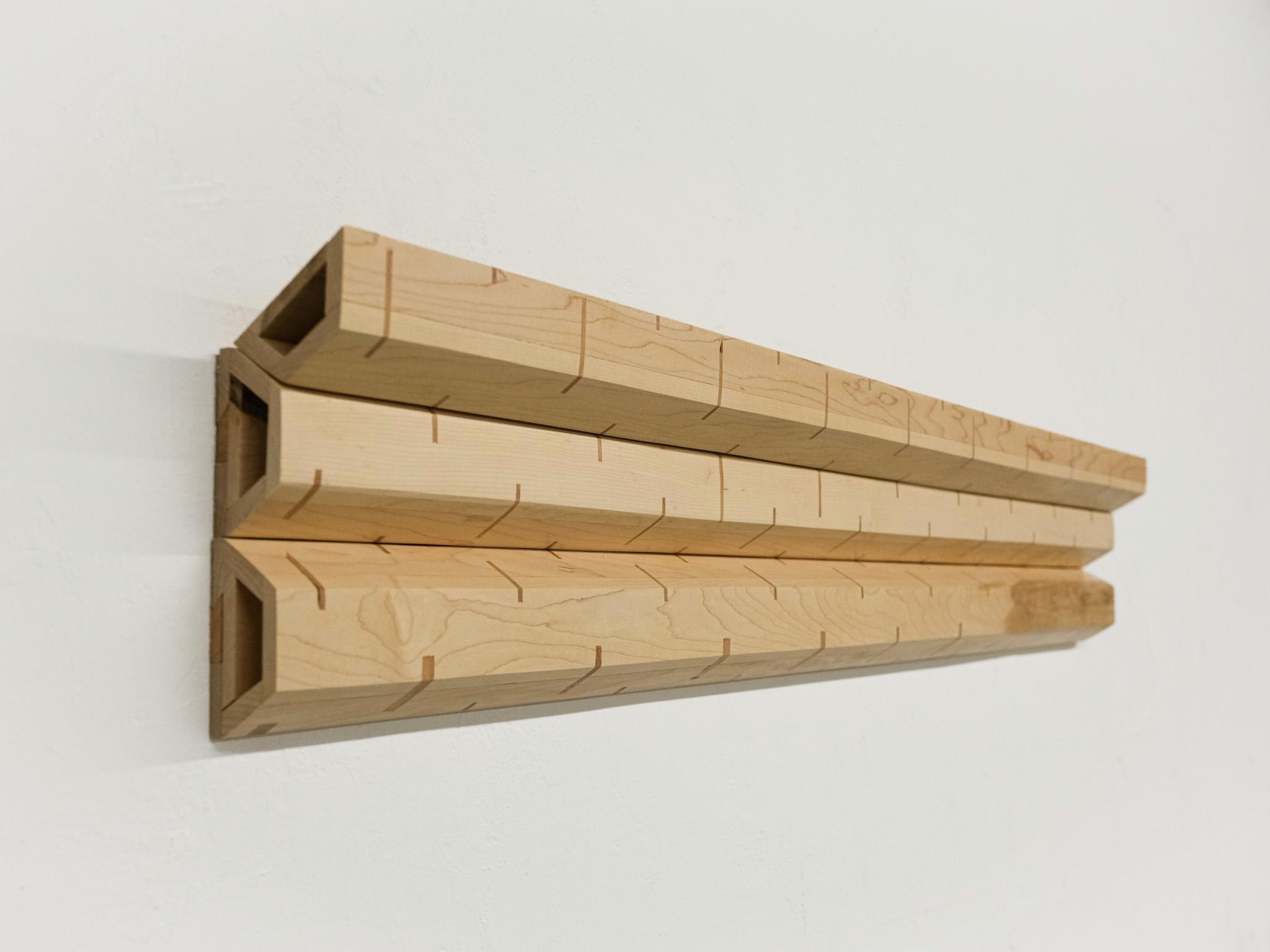 Form gives structure. Emptiness gives function. As Laozi alludes to, “the use” here emerges from a productive tension between what is present and what is withheld, where solidity and aperture operate in tandem and where absence is not a negotiation but an activator. Leah Liu Yutong’s practice rests on the understanding that empty space is a condition for resonance and modulation. Working across sculpture and sound, Liu configures hollow modules into recursive assemblages that resist closure and stability. It is from this orientation that “susurrus 聲聲私” emerges, extending the inquiry into how forms speak through what they withhold. The title “susurrus” names a soft murmur: a breath passing through a body, a wind brushing against an opening, an air moving through a cavity. It is a sound that lingers.