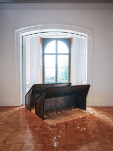 Hollow chambers and folded enclosures seem to hold air as much as material. Liu’s works begin with a three-dimensional sensation. Forms are felt before they are named, often arriving from infrastructures or enclosing gestures–structures that contain, surround, or quietly support. The images are not flat. She sees them as volumes shaped by weight and balance, and feels a need to touch, to make, to test them through the body within the space she inhabits. Trained in sculpture at the Rhode Island School of Design (RISD), Liu brings these sensations to forms of being. She utilizes repetition and misalignment to create absence and open gaps where forms loosen and new possibilities emerge. In this way, Liu’s practice resonates with Taoism philosophy, that ideas of “the Way (道)” and “Wu wei (无为)”, where making unfolds through attentiveness and intuition rather than force.“susurrus 聲聲私” brings together seven works developed from Liu’s time at the Rhode Island School of Design (RISD) and her current residency at the NARS Foundation. Together, the works trace a vertical progression that moves from forms anchored to the ground pieces that climb the wall. Corners thicken, folds accumulate weight, and objects are allowed to hold themselves. Liu’s “susurrus 聲聲私” yields to gravity, guiding how each form arrives and remains.