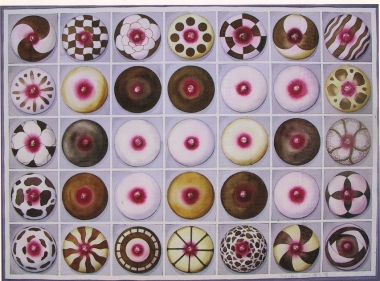 The mouthwatering desserts provoke reveries, while also fulfilling the viewer’s illusions and desires to be demanded of, and allowing the spirit to wander between “Food” (desire) and “Desire” (control). This is human’s nature of “eating and mating” at its peak. One should note that Chen’s celebration is not just a feast of desserts! To convey the collection of feelings, Chen uses delicate brushworks to create images of ingenuity, unexpected combination of colors, shapes and harmonies with many hidden surprises.
