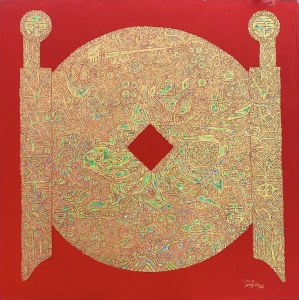 This series incorporates visual elements derived from ancient Chinese legends, religious traditions, and Buddhist temple totems. While the compositions exhibit abstract qualities, each piece is imbued with symbolic narratives that evoke contemplation on tradition, faith, and the human connection to the divine. The works are characterized by a fusion of abstraction and storytelling, inviting viewers to engage with the layers of meaning embedded within the imagery.