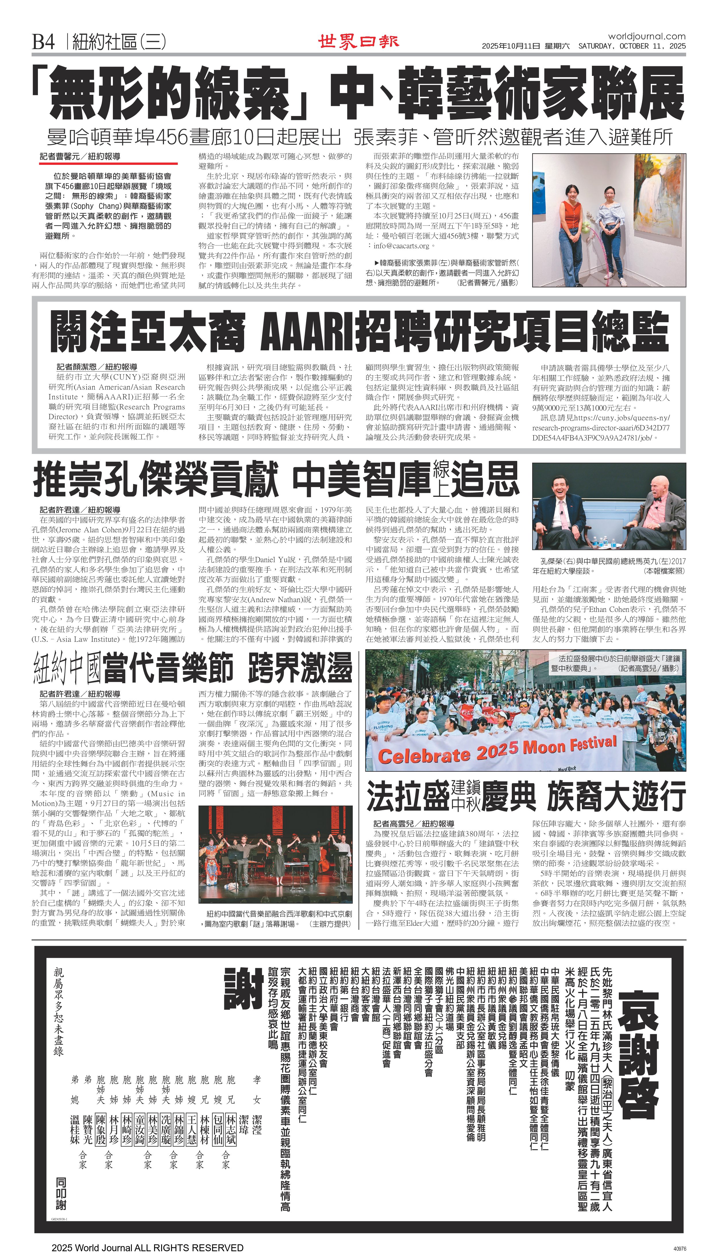 2025.10.9[China Press / 侨报] 双人展境域之间华埠456画廊展出 ....more