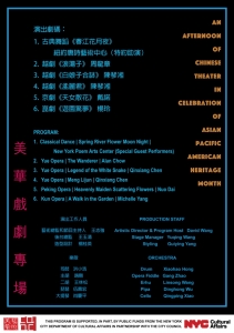 此次美華戲劇專場慶祝亞太商傳統月公演,美華藝術協會主辦, 在5月22號下午2點, 於紐約中華公所為您隆重演出一個綜合性的戲劇樂曲演出。