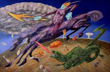 定则是其外在表现。通过强烈的色彩、扭曲的姿态以及错位的空间结构,他构建出一种“被控制的混乱”:理性维持