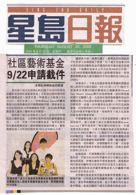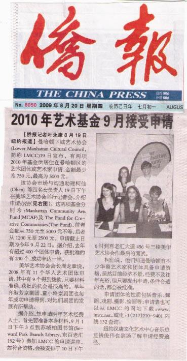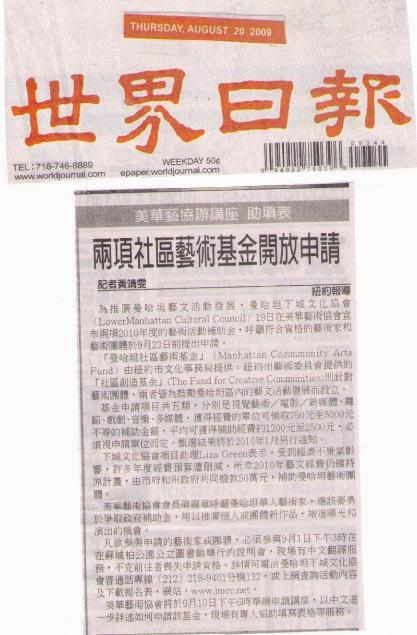 | 2009.8.19 | 纽约两大艺术基金 9/1办申请介绍会 ....點選更多訊息 |