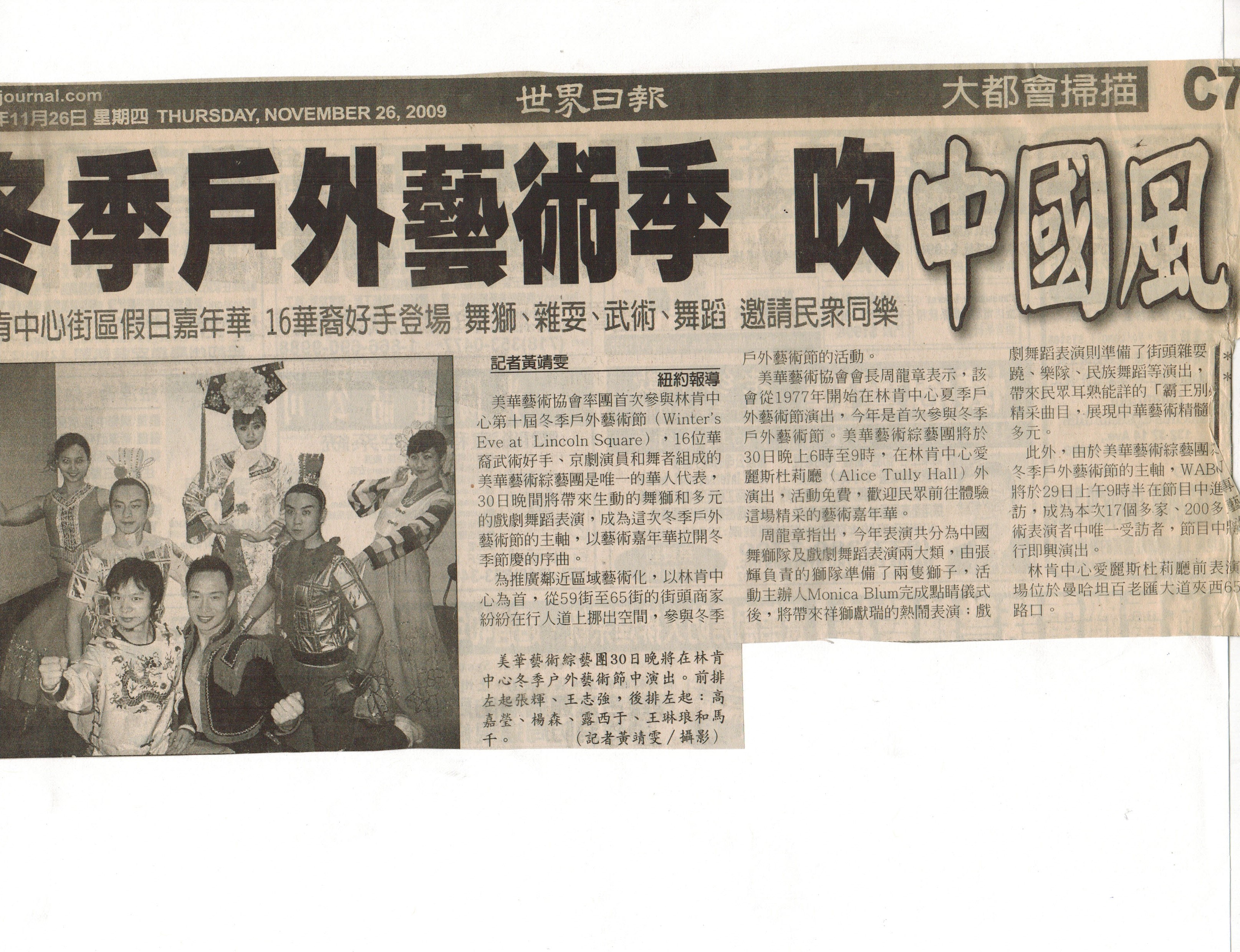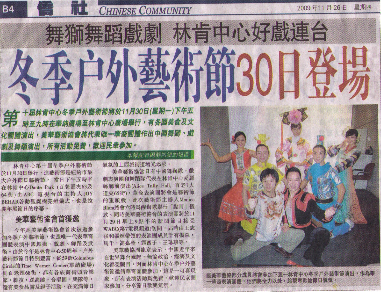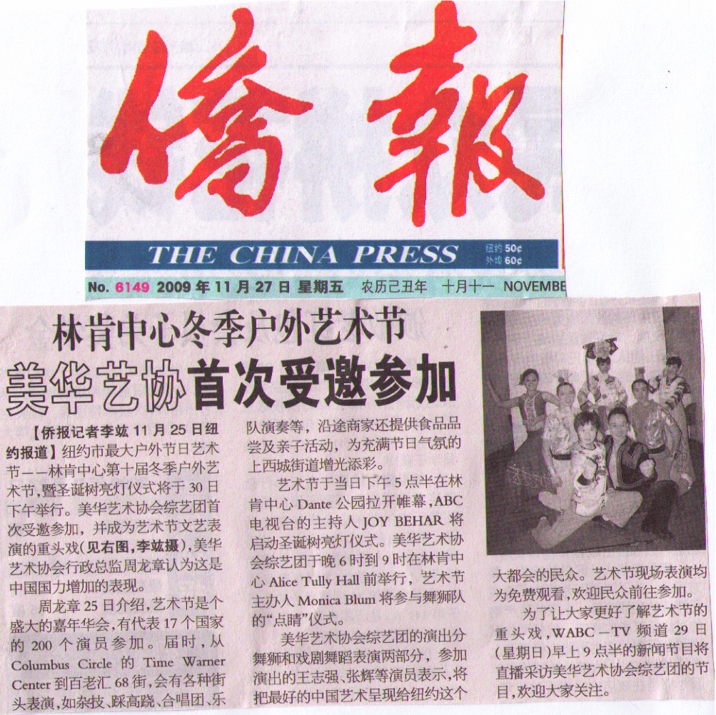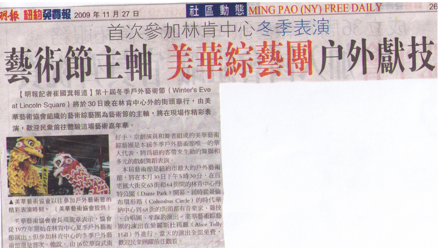2009.11.27 | 美华艺术协会首次参加林肯中心冬季表演 ....點選更多訊息 |