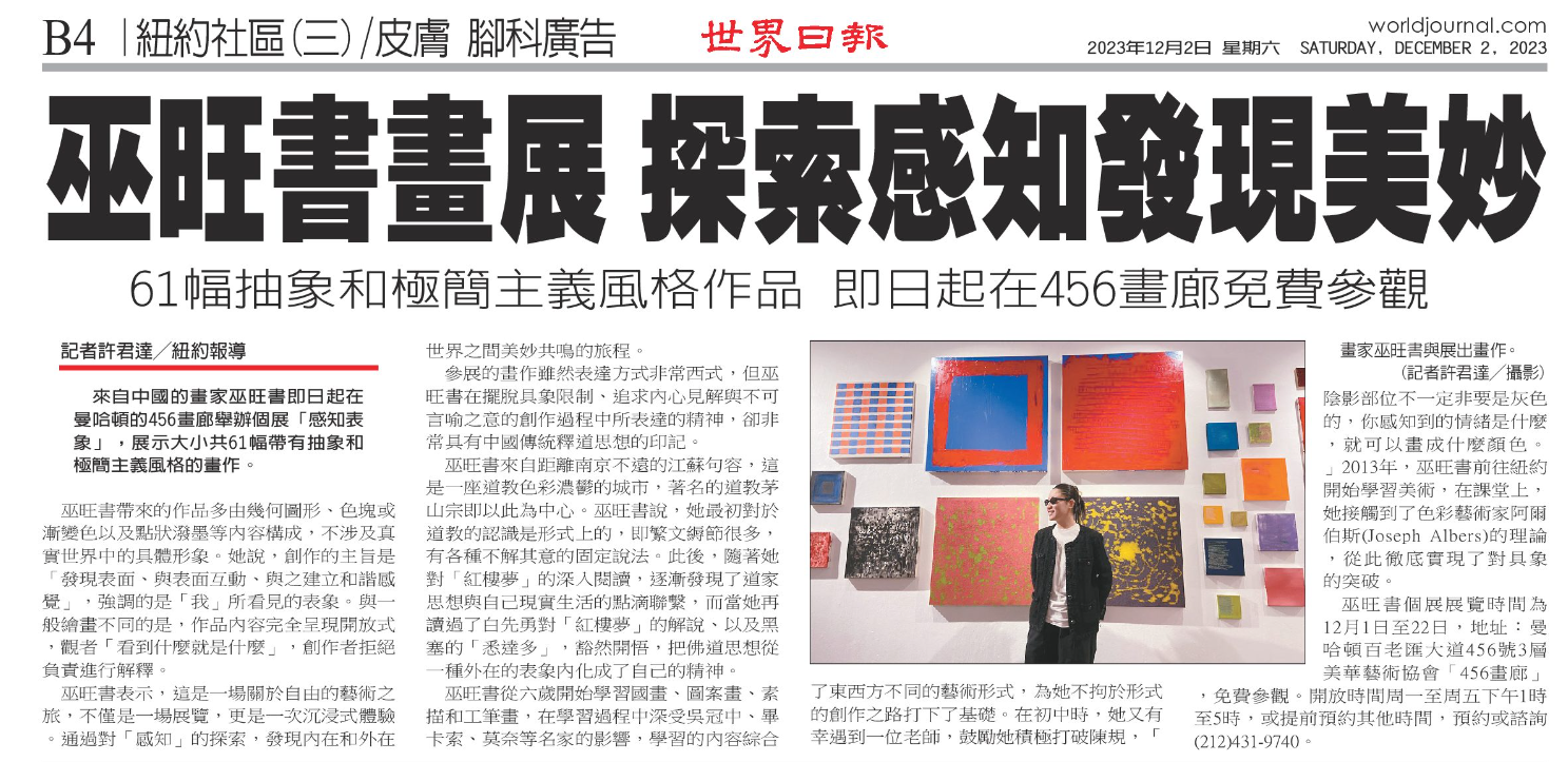 2023.12.5[World Journal/世界日報] 巫旺書畫展 探索感知發現美妙 ....點選更多訊息