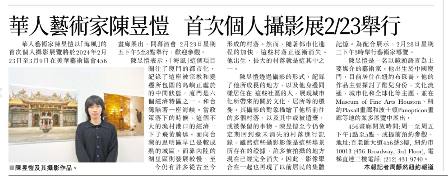 2024.2.24[World Journal /世界日報] 陳昱愷“海風”攝影展 聚焦廈門都市化 ....點選更多訊息